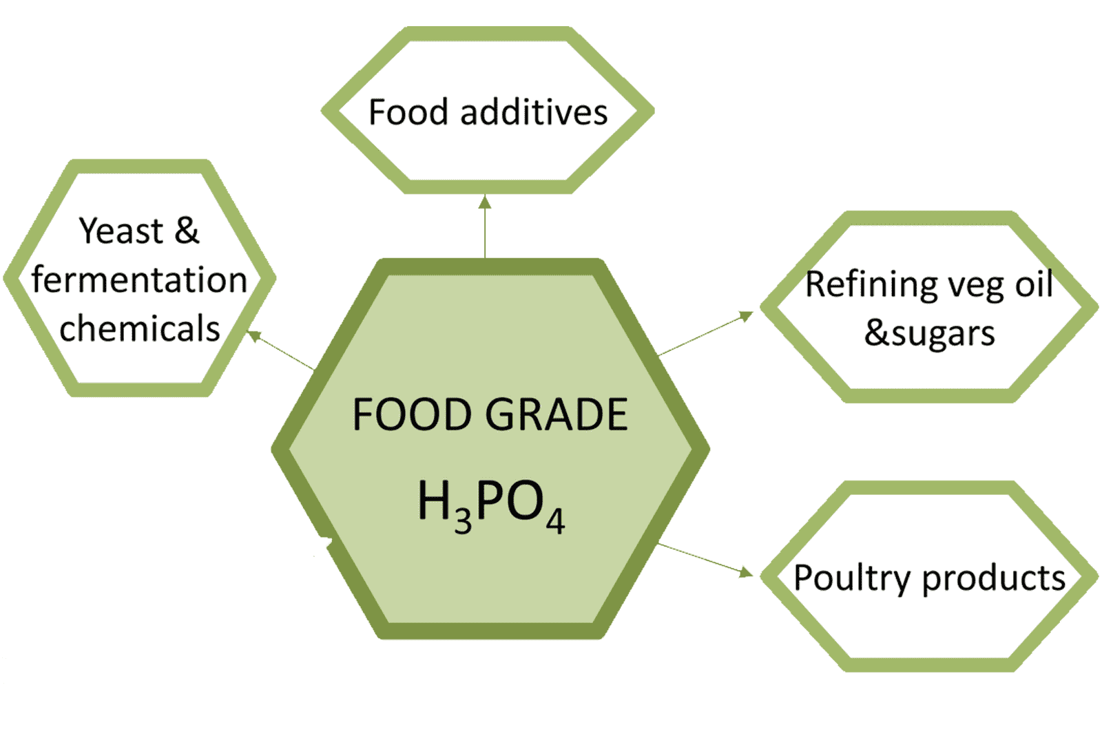 Phosphoric acid and its phosphate derivatives find application yeast and fermentation chemicals, water treatment etc. It is also used for refining of vegetable oils and sugars. The food-grade phosphoric acid salts are blended with baking soda to manufacture baking powder, a fermenting agent used in many baked products. Breakfast cereal, cereal bars, packed coffee beverages, seasoned waters and processed foods also might contain food-grade phosphoric acid. The poultry products are improved with salt solutions to enhance their flavor and moisture. These salt solutions also include food-grade phosphoric acid or phosphate salts.